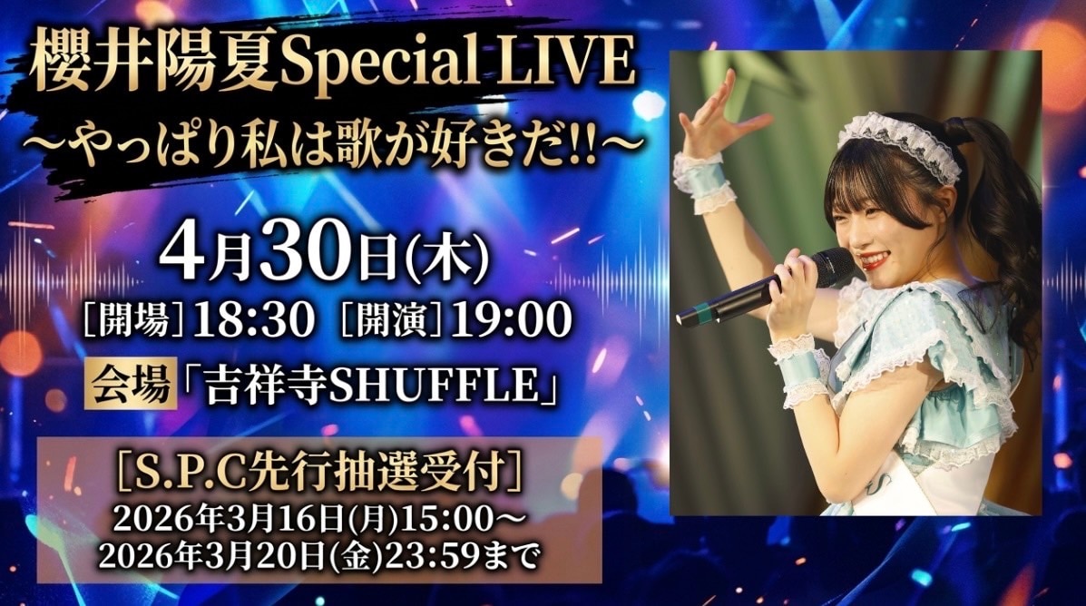 「櫻井陽夏Special LIVE~やっぱり私は歌が好きだ!!~」開催決定!